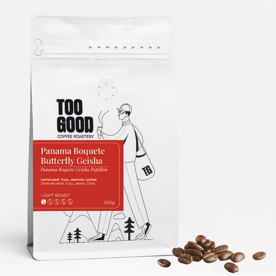 The light roast accentuates its tea-like body and crisp acidity, creating a tasting experience that feels luminous, refined, and full of life — a fitting tribute to the legendary Geisha, reborn as the Butterfly of Boquete.