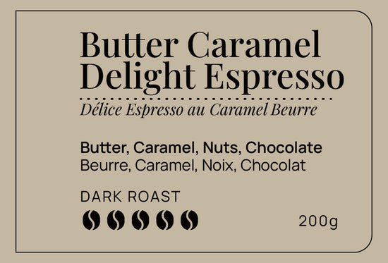Introducing our Butter Caramel Delight Espresso, a versatile blend that's perfect for any time of day. This coffee is a rich symphony of flavors, designed for those who appreciate a bold and robust espresso. It greets you with a luxurious buttery and caramel-like body, setting the stage for a deeper exploration of taste. As you delve in, you'll discover a delightful interplay of nutty nuances and rich chocolate notes, creating a well-rounded and satisfying experience. Strong and assertive, this espresso pairs wonderfully with a variety of snacks and meals, making it an ideal companion for both your quiet moments and culinary adventures.
